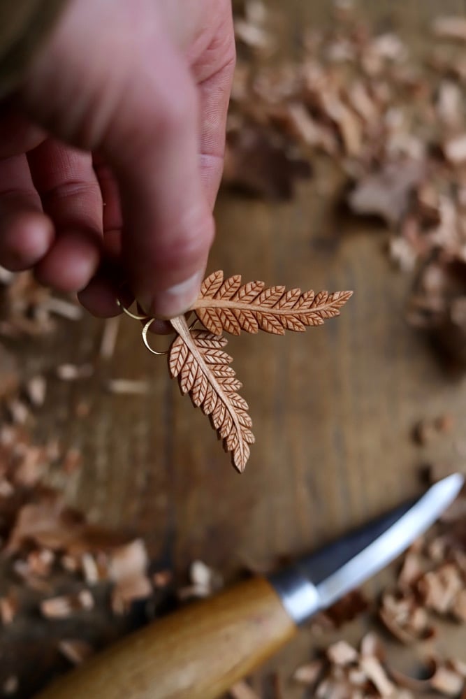 A unique wearable piece of wood art Inspired by the beautiful Forest Ferns!