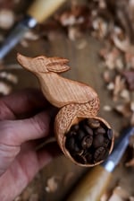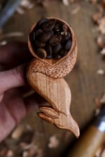 Entirely hand Carved by knife from beautiful naturally fallen wild cherry wood that is a lovely and fitting red colouration